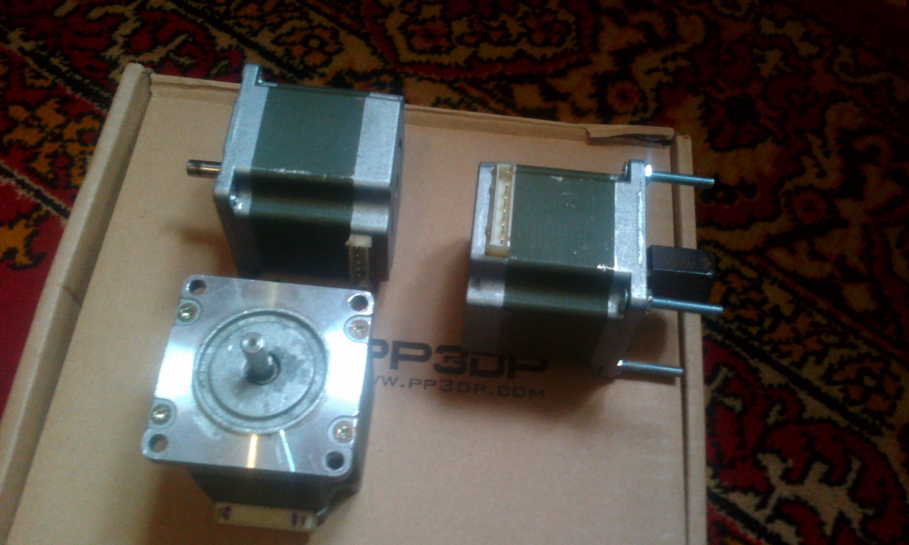 Лот 13. Шаговые двигатели маркировка Japan servo KH56KM2B098. Ток 2 ампера, угол 1.8 градуса, 57 мм, типа NEMA23, длина двигателя 56 мм, вес 600 г. 6 выводов( две обмотки с отводами от середины). Диаметр вала 6.35 мм.(покупал у Тенгеля) - 3 шт.