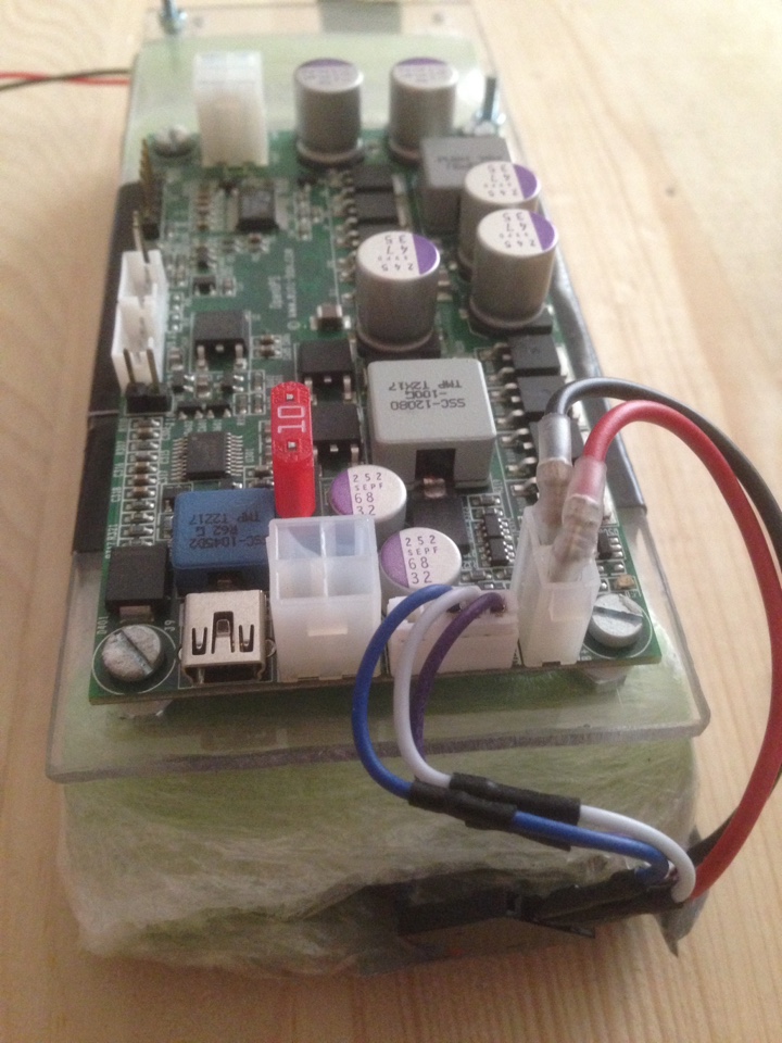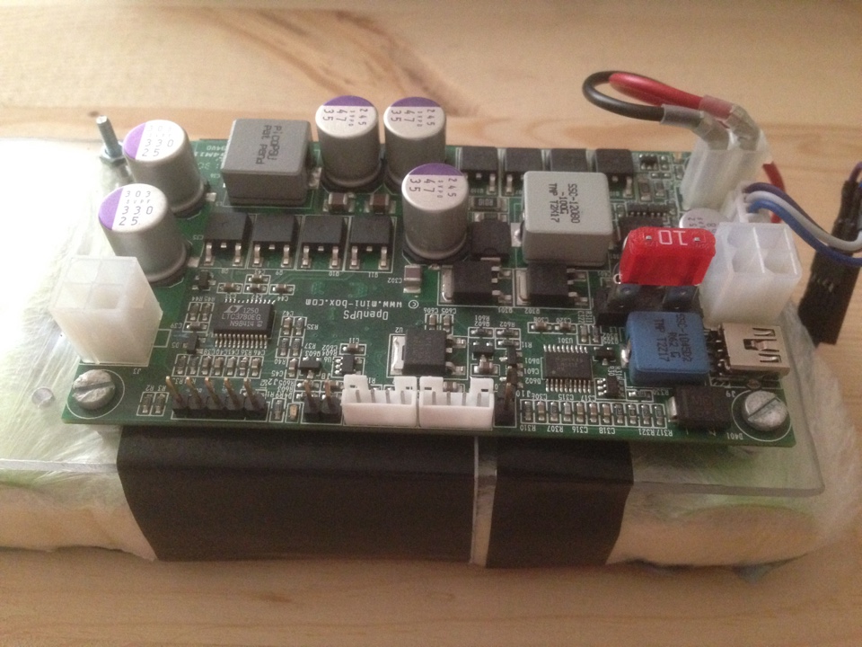 Сверху уже установлена и настроена плата зарядки OpenUPS. Напряжение на выходе настроено на 9.6 В (но можно перенастроить).