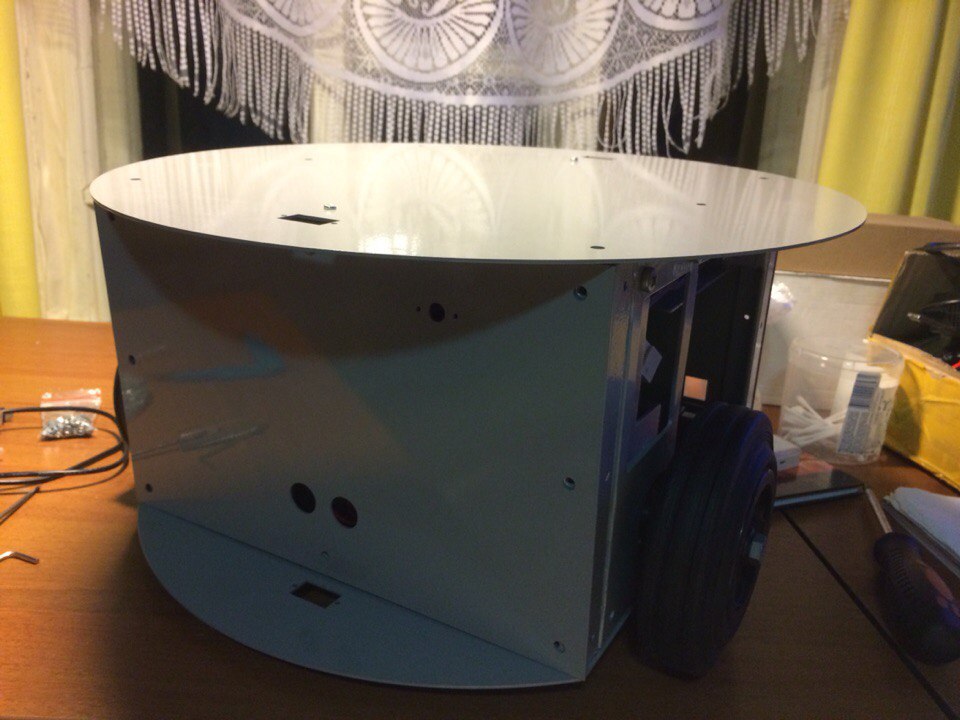 Продам платформу робот в виде шайбы, выполненного из метала, покрашенного порошковой краской серого цвета, на его борту имеется: управляющие платы от «Open Robotics» OR-AVR-M128-DS и OR-USB-UART, Силовая плата OR-MD2-10A-12V-X, все подключено