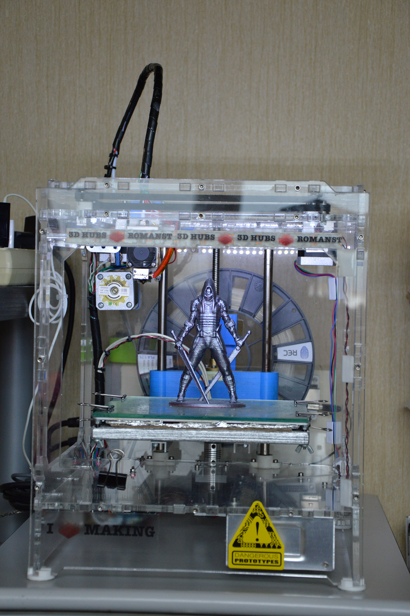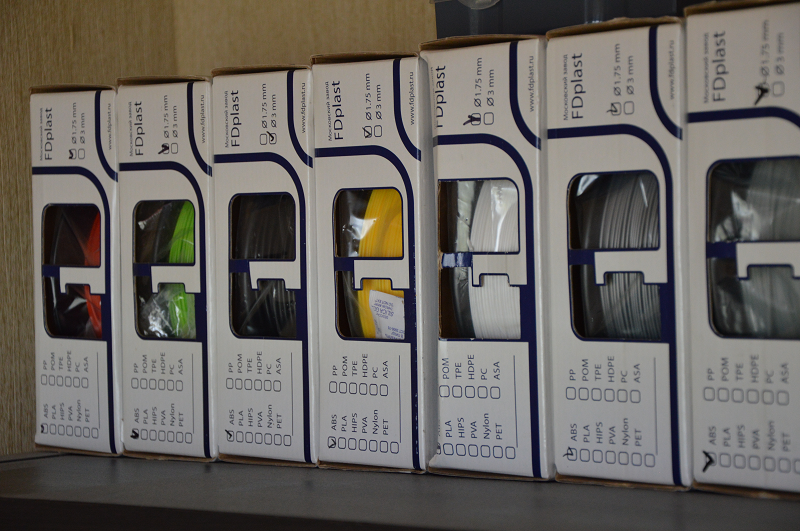 Корпус - акрил, рельсы HIWIN, электроника RAMPS, боуден, хотенд E3D Lite6(копия), область печати 150x150x148 мм, скорость печати - выше 100 мм/с. В комплекте 7 кг пластика FDplast ABS + 1 кг REC PLA, есть много всяких пробников, кое-что из запчастей...