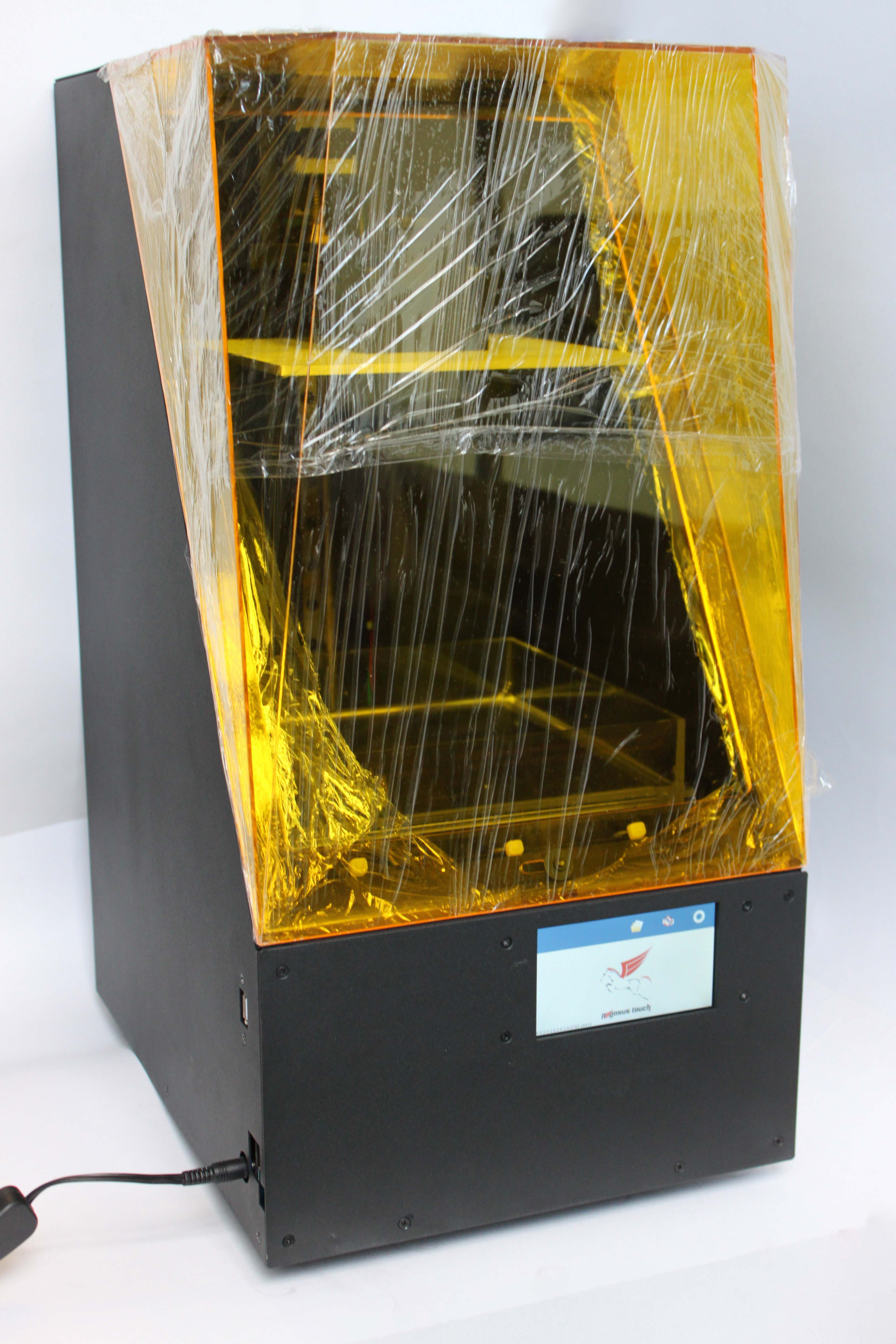 Был приобретен на Kickstarter. Пришёл из США через год после покупки без смолы - к тому времени интерес уже прошёл. Проверял, калибровал без фотополимера - всё рабочее. Можно приобрести у производителя Open Resin-лицензию и печатать любым фотополимером.