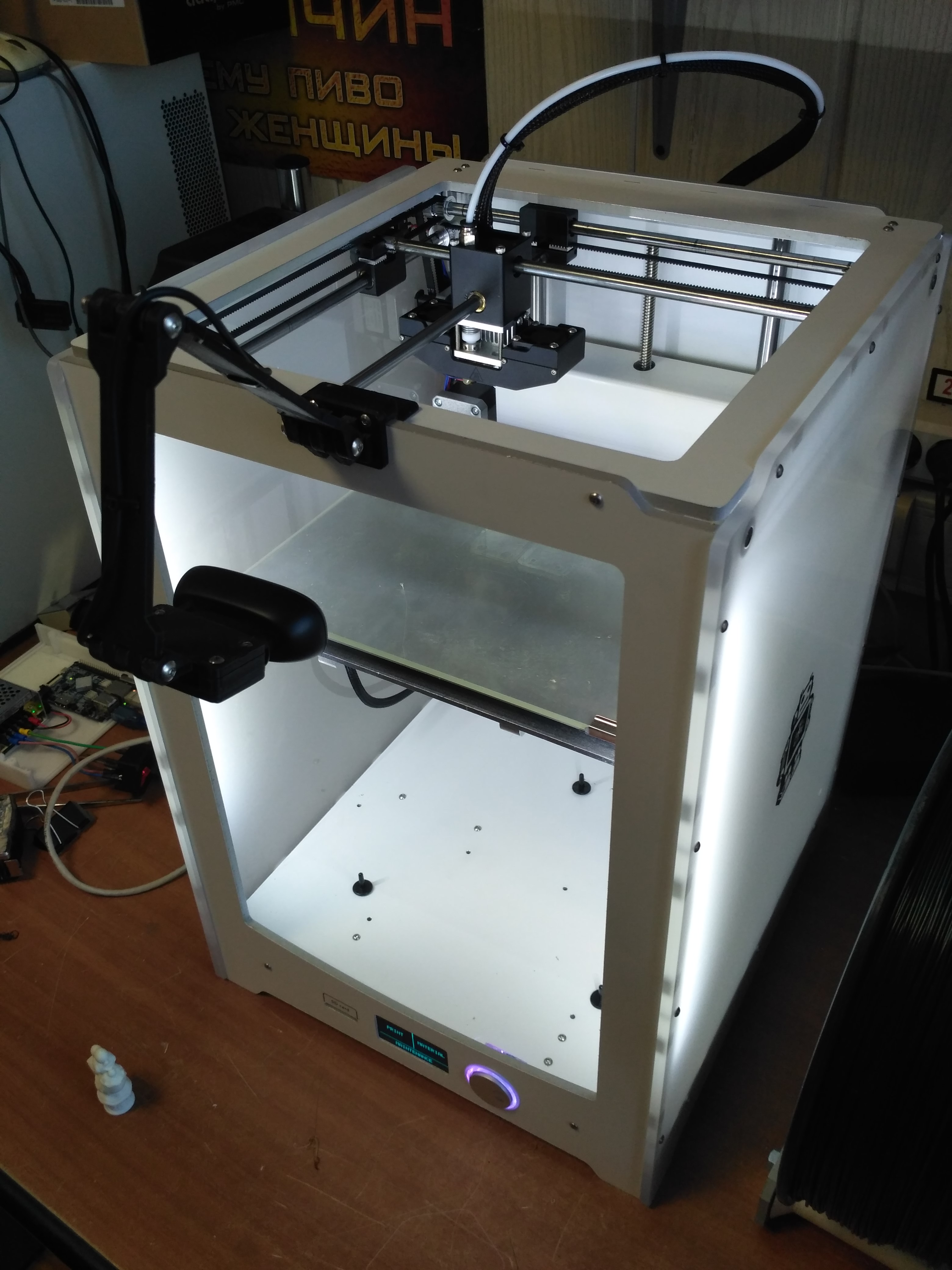 1) Установлен фирменный экструдер "Бульдог" с редуктором и 2 подающими шестернями для более стабильной и точной подачи пластика.