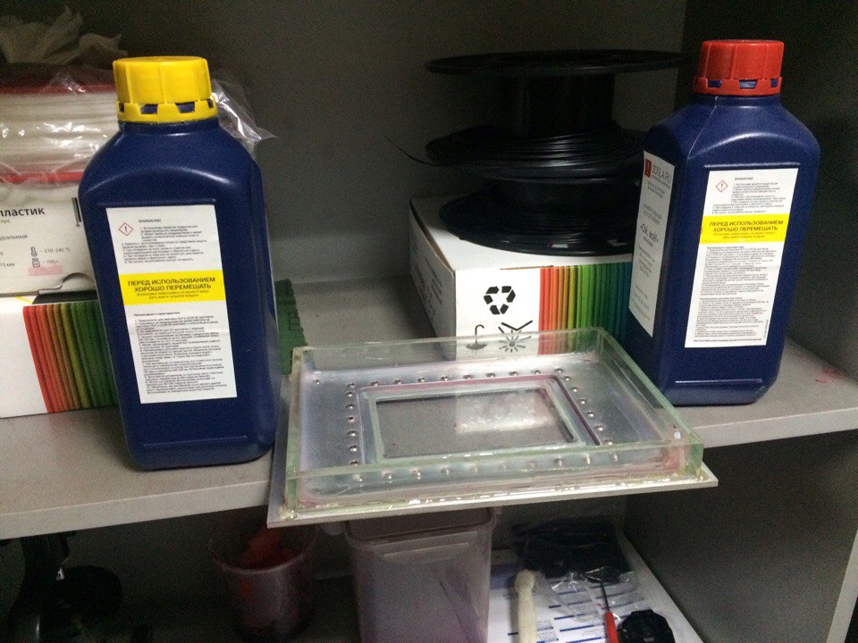 Принтер отпечатал около 0.5 литра красного полимера, почти не использовался.
