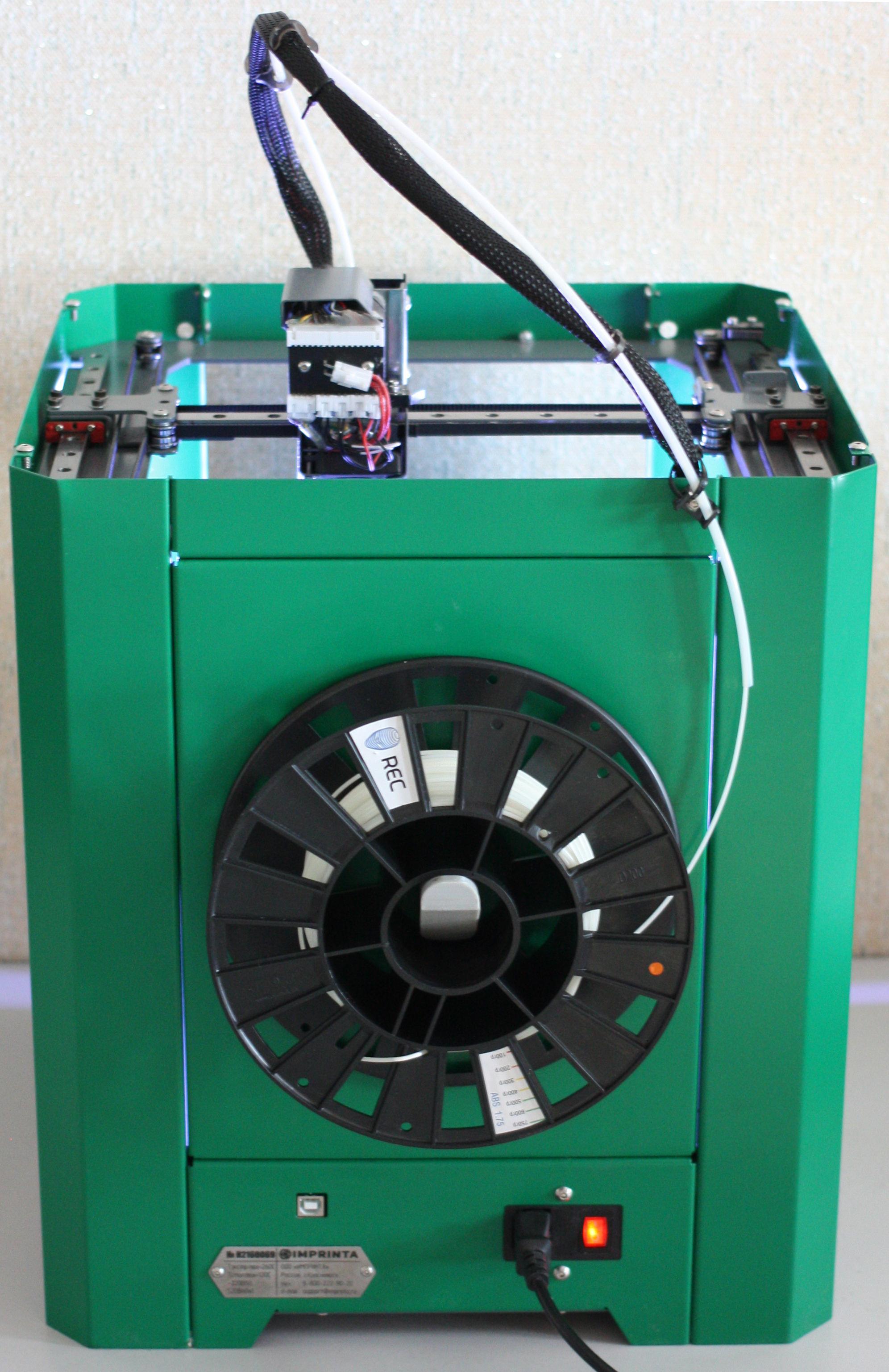 Данный принтер использовался компанией Imрrintа на выставках, при этом был полностью пересобран. За год использования мною у принтера был заменён левый дальний шкив по причине срыва резьбы винтика при закручивание и датчик температуры экструдера т.к. начал показывать её не правильно.