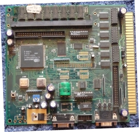 Достался с горелым блоком питания и неисправным купюроприемником. Толком еще не ковырялся, сегодня перед работой достал только плату(собственно, из-за нее я автомат и забрал, есть мысль перешить ее и использовать в качестве робоконтроллера) и заглянул в купюроукладчик. На плате обнаружился AT90S2313.