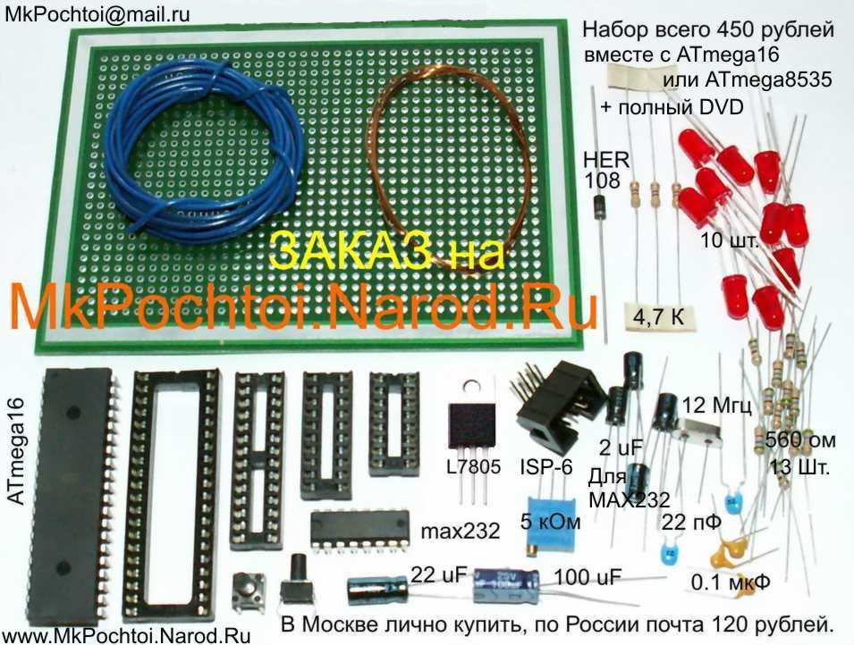 Макетные платы с комплектом деталей и с микроконтроллером по вашему выбору всего за 550 руб.