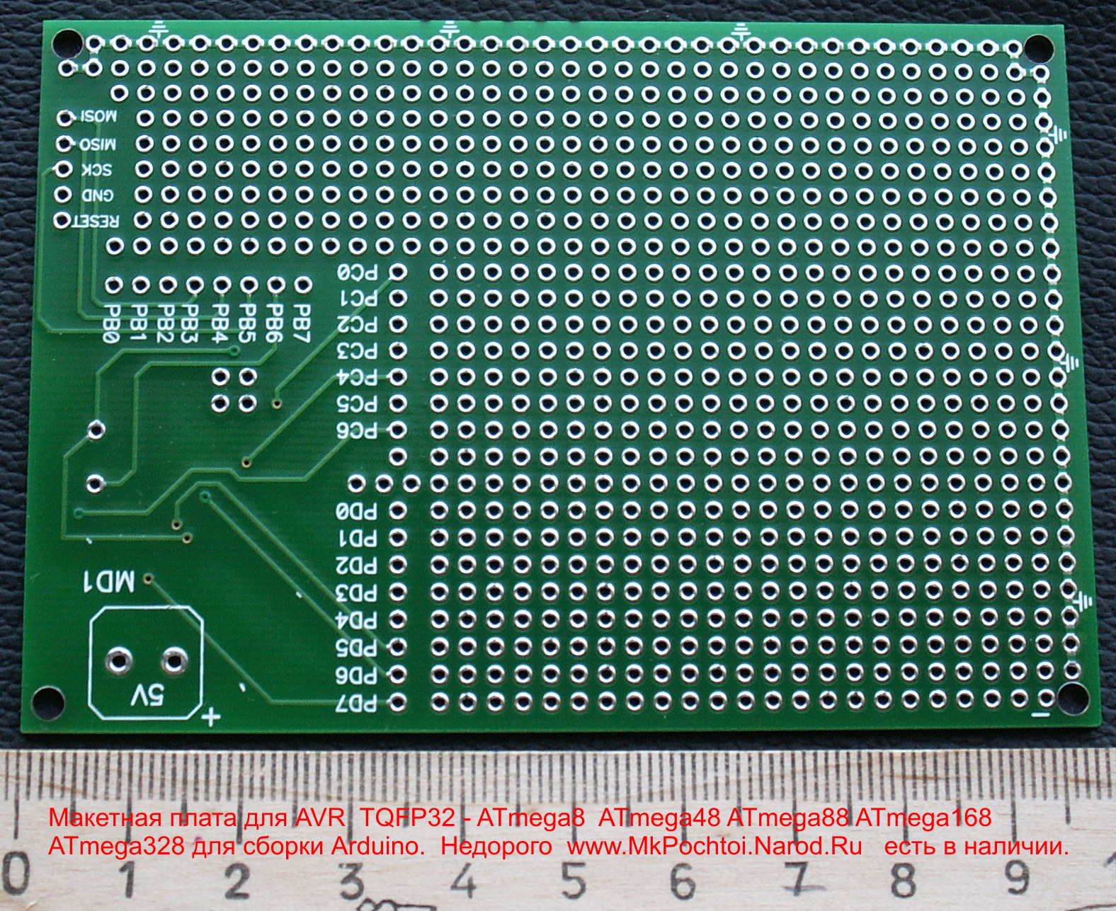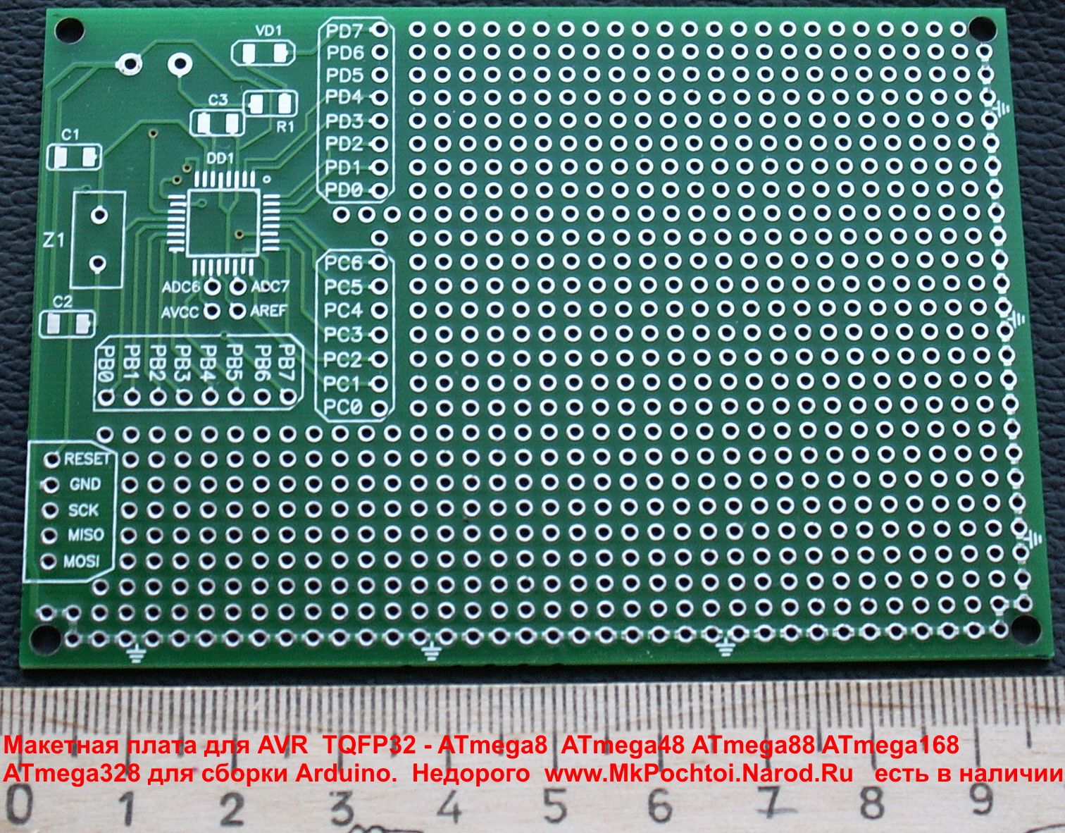 В архиве Фото плат, собраной платы, собраного устройства в корпусе, прошивка и инструкции к прибору : http://mkpochtoi.narod.ru/fcl.raravr123.nm.ru писал(а):Такая макетка у Семенова Михаила стоит 100 рублей только получше ИМХО чуток - вот на этой фотке она только с деталями. 115 на 82 мм. Качечтво высочайшее из Китая, маска не жидкая как в Резоните, полуда глянцевая АЖ СВЕРКАЕТ ! Главное по контуру широкая дорога которую удобно использовать как землю при макетировании.