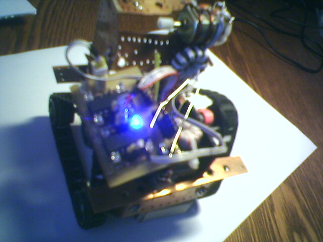 Второй вариант - вышел за пределы установелнной массы, шасси весело 420 грамм, тобишь на электронику мне нужно было уложится в 80 грамм... пришлось облегчать шасси, вырезать дырки. и менять железные детали "ковшика" на пластмассовые. (жалко, на железных деталях ковшик без проблем поднимал до 5 килограммов, была использованна механизма от ваоенного перископа..)