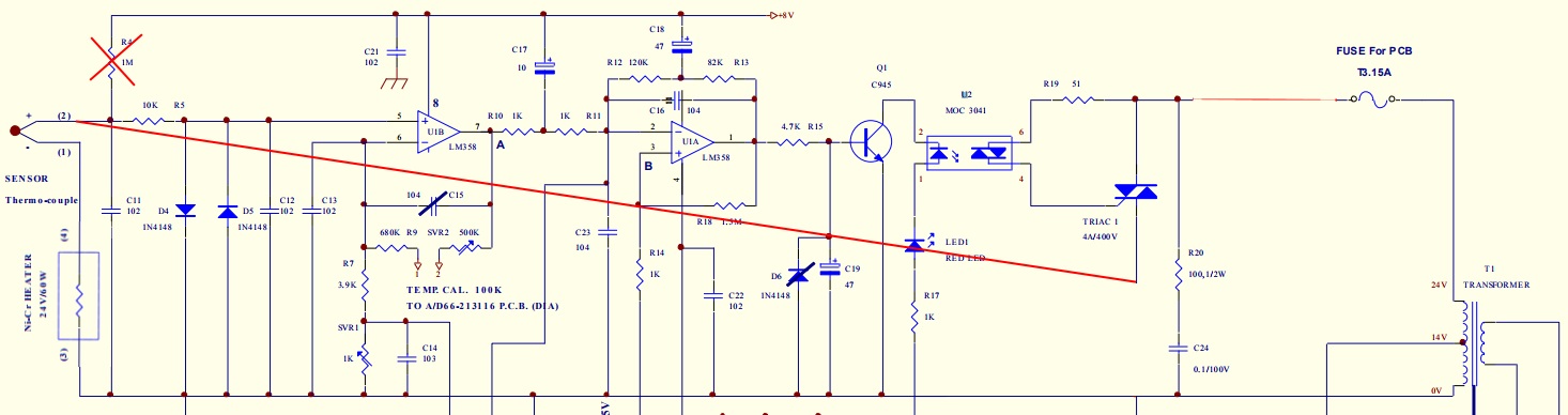 по китайской схеме минус термопары и минус нагревателя одно и тоже и они сидят на постоянном минусе схемы