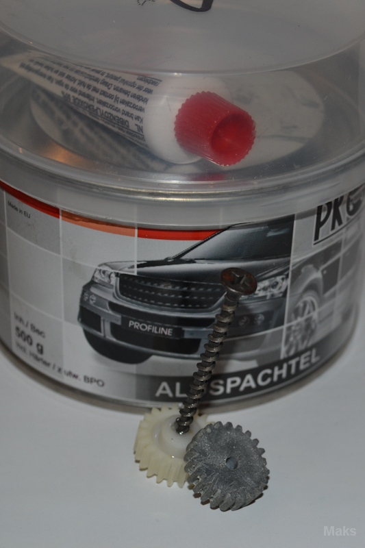 саму отливку, остановился на шпаклевке с алюминиевой пудрой (цена 120р./0.5кг). Масса тянется похоже на сметану, пузырьков не оставляет сохнет 20-30 мин. на прочность... руками не смог поломать пополам)