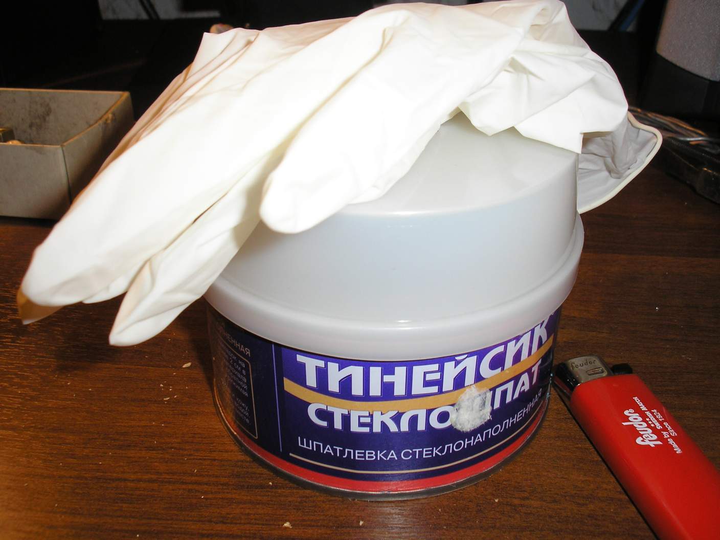 Дело дошло до заливочного материала. Я купил автошпатлевку стеклонаполненную (так на упаковке написано). Выглядит она так: