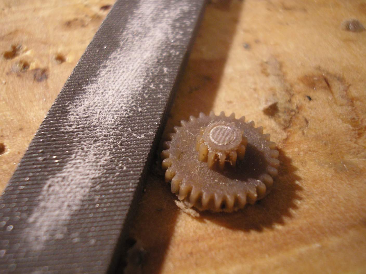 Испытывал я мою шестереночку (как приятно…), надев на вал моторчика. При вращении отклонений от оси я не заметил (обычно видно полупрозрачную копию шестерни, когда она быстро вращается на кривой оси). На шпильке поднес шестеренку-образец (заводскую) и та закрутилась!!! Никаких отклонений от нормы я не заметил. Проверял обе «подшестерни» на изделии, всё работает как надо (может неровность отверстия мне показалась?). сидел я с моторчиком и шестеренками минут 5 – ждал когда ж моё изделие развалится? Не развалилось!