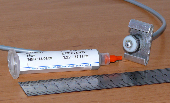 Таки я уж штук пять разных по-перекупал, но ни разу не попадалась с припоем, всё какие-то не понятные, на воск похожие, причём активные. А эта с припоем я так полагаю... Для SMD монтажа...