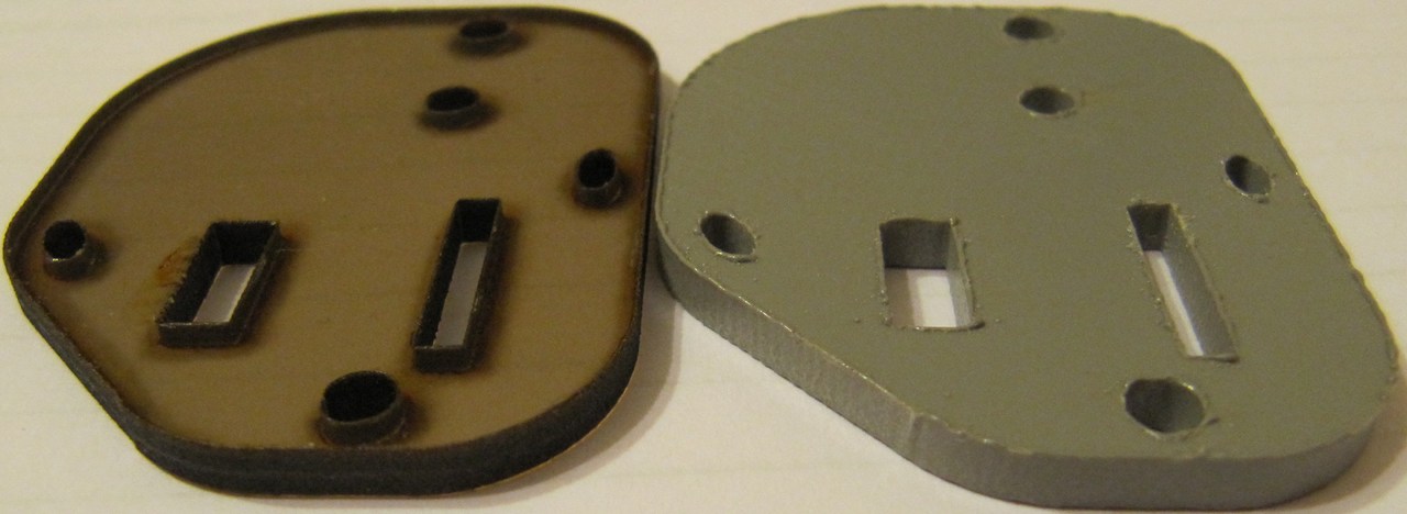 ABS мягче (можно дорабатывать ножом) толще рез (больше зазоры при посадке) и в конкретном материале была одна сторона шерховарая