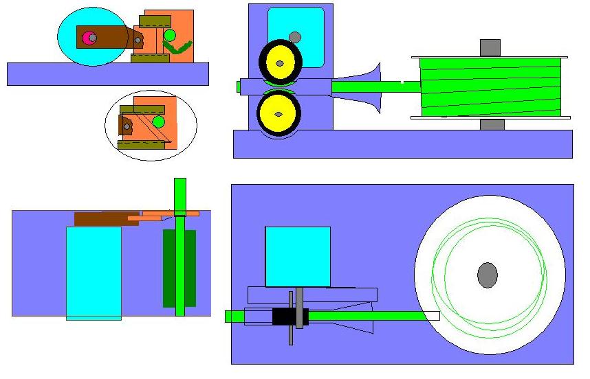 5) несколько сменных приемных лотков(спиралевидные для длинных отрезков)