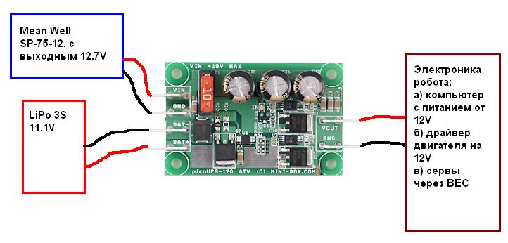 Стоит на ебее около $38 Чем хороша: используются стандартные 3S LiPo с хоббисити, за год эксплуатации робота ничего не сгорело выход = от 10 и ниже до 12.7, ну то есть в районее 12V отсечки правда нет, но через делитель можно контролировать напряжение