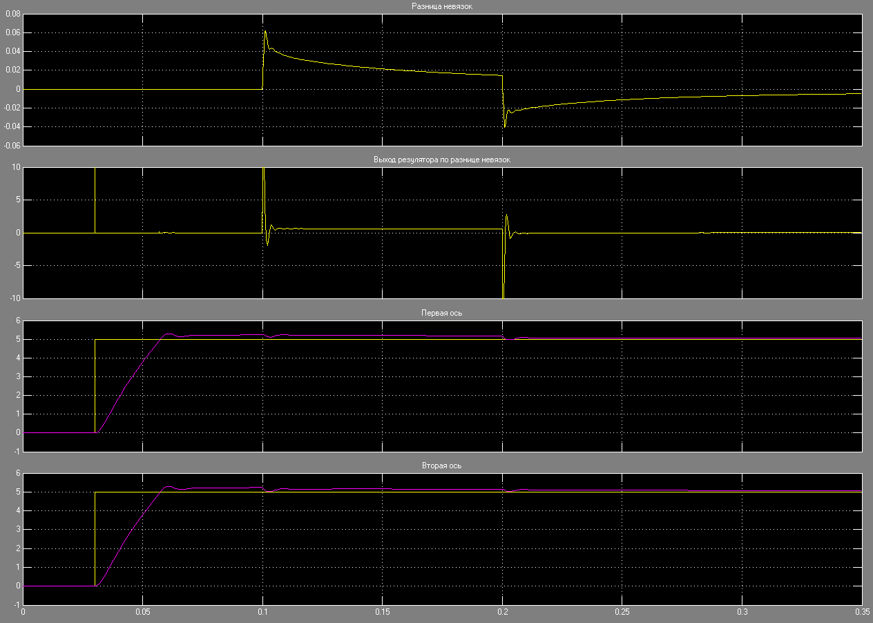 но я то выше к чему, по сути в управлении траекторией важно соблюдать четкое соотношение скоростей.. я подумал смотреть на отношения невязок приводов по скорости .. ща покажу что вышло: