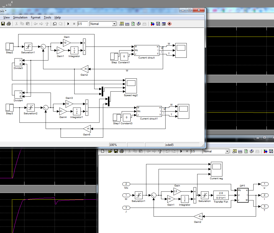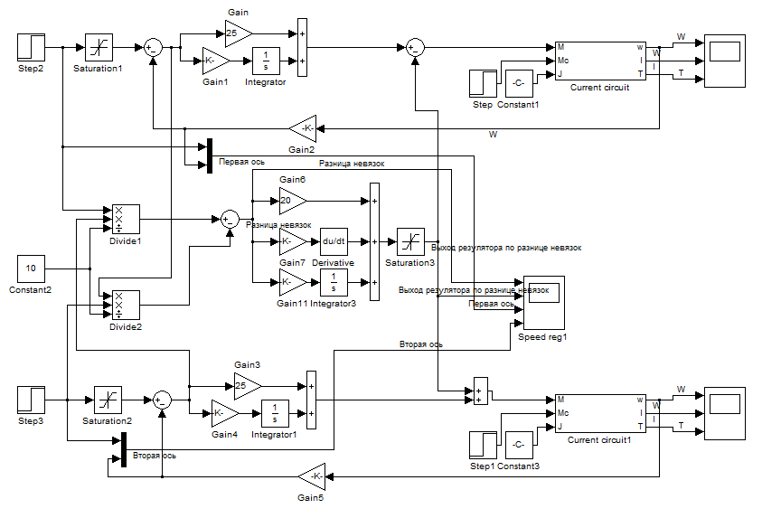 Виталий, имхо, нужно разграничить уровни быстродействия.. контур тока быстрее контура скорости, также как и контур скорости быстрее контура положения.. по идее нужно утащить минимизацию ошибки по траектории на уровне контуров скорости приводов..