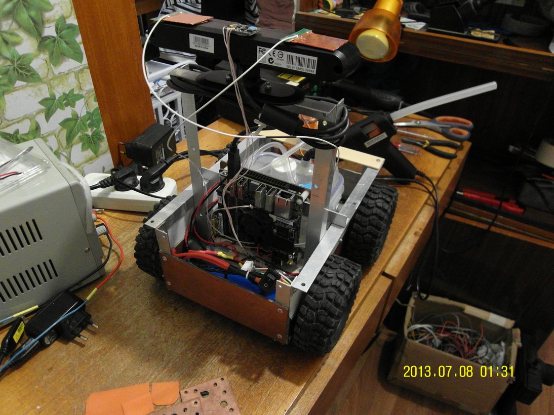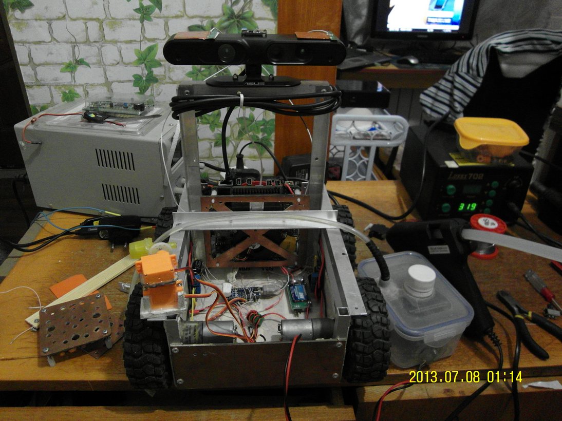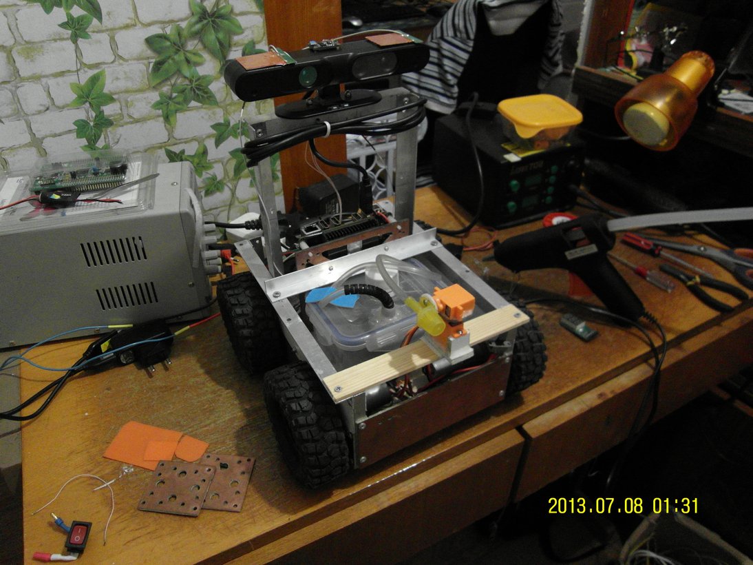 опять же развесовка улучшилась. насос я долго думал как питать. мне по большей части надо от БП запускать. а эта хрень автомобильная при старте да и в работе жрет амперы будь здоров! посему его повесил вместе с сервами на регулятор 6В. не знаю теперь cможет NUC'овский БП потянуть все разом? пробовать страшно. при выключении мотора он еще самоиндукцией успел лазер спалить, причем так что он не деградировал до светодиода, а вообще не излучает свет. лол. сервам вроде пофигу. вай лишь бы ниче не погорело. у меня там куча цепей. все ж надо коммутировать.