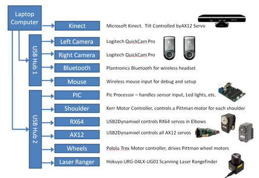 хотел бы я знать. инфы по роботу в сети не нашел. Единственное что есть это профиль одного из разработчиков. По которому ясно что он крутой спец в области машинного зрения. Робот сей создан в рамках участия в конкурсе. Вполне возможно что некоторые элементы избыточны для сего проекта.