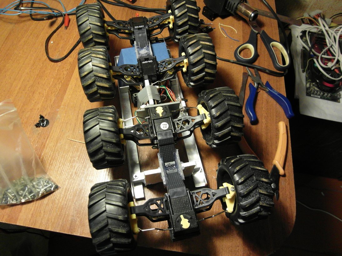 В дальнейшем, возможно куплю р/у модель 1:10 crawler. Насколько я могу судить (по информации в сети), такой тип модели позволит роботу без труда выехать из дома в огород и вернуться обратно проехав по ступенькам(!!!)лестниц. Не говоря уж про дверные пороги, которые для моей нынешней платформы, являются непреодолимым препятствием.