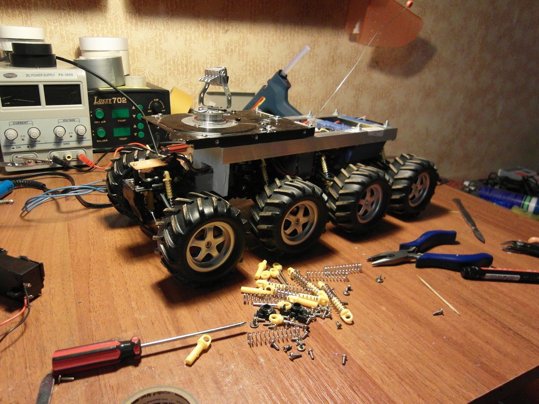 В дальнейшем, возможно куплю р/у модель 1:10 crawler. Насколько я могу судить (по информации в сети), такой тип модели позволит роботу без труда выехать из дома в огород и вернуться обратно проехав по ступенькам(!!!)лестниц. Не говоря уж про дверные пороги, которые для моей нынешней платформы, являются непреодолимым препятствием.