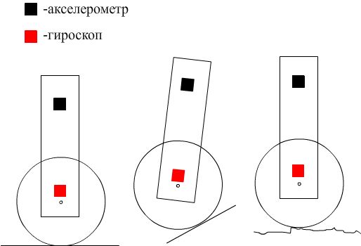 Решил сделать робота на двух колесах который балансирует, идея взята с http://www.roboclub.ru/master/sensor/20 ... ka_91.html пока проект находиться в стадии сбора информации и просто раздумий. Принцип такой-же как и в статье, тоесть гироскоп+акселерометр, возникают непонятки в моей голове зачем городить этот огород из акселерометра и гироскопа. Как было написано в статье, гироскоп работает быстрее но в нем накапливаеться ошибка (спрашивал про гироскопы на rcdesign.ru там сказали что у гироскопах что стоят на вертолетах ошибка 30 градусов в минуту), акселерометр работает "медленее" но в нем нет ошибок. Тоесть как я понял работают одновременно два устройства, и допустим раз в секунду мы сбрасываем значение на гироскопе и приравниваем с значением полученым при помощи акселерометра, дальше работает по гироскопу, и все это повторяеться. Но непонятно, зачем нужен гироскоп, у акселерометров быстродействие 300 гц, думаю за глаза хватит, если использовать модельный гироскоп то там вообще все 50 гц, этого момента я понять не могу. Может у кого есть какие мысли.