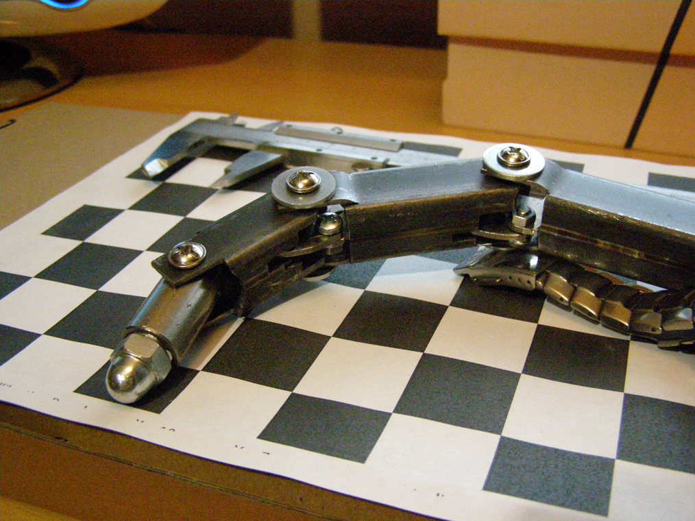 Если бы конструировал в 3D, мне бы в голову не пришли такие странные формы. Думал руками, эволюционировало всё по ходу пьесы. Самое сложное было - средний сустав. Там 4 слоя внутренних деталей, входят друг в друга пропилами как инь и янь. Всё это полито литром пота и даже несколькими каплями крови.