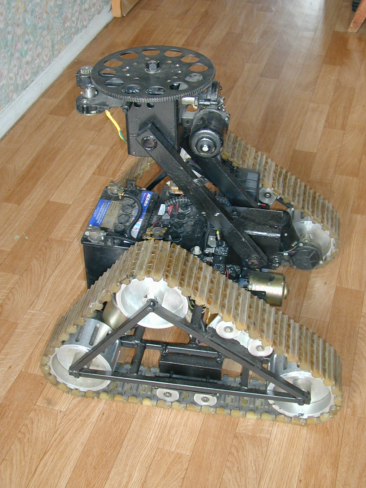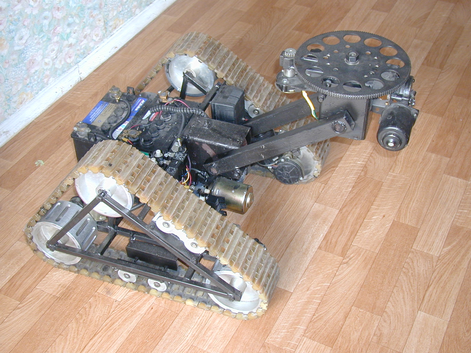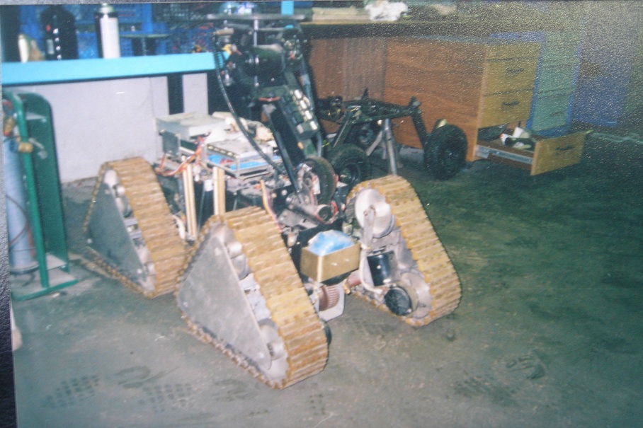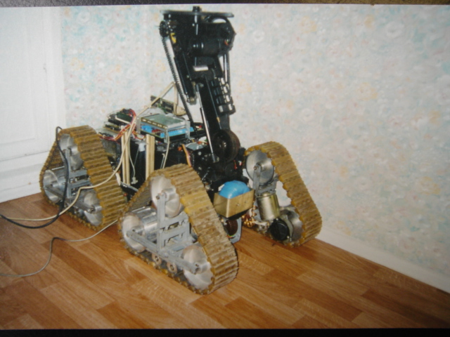 demon333 писал(а):на 4х гусеницах это была первооснова,могу здесь выложить еще несколько фоток по нему,но это все,даже единственное видео с ним где он тащит Ренджровер на буксире и то пропало,потому что снималось в 96году на видоекамеру с касетой,пленка давно сгинула.Поскольку вещь показалась бесперспективной то разобрал ее и собрал что по проще и изящнее,на этой базе и собрал терминатора для кинотеатра.Потом приладил руку,потом снял все и дал лопату.Ща попробую чего нить выложить тут если не возражаете.