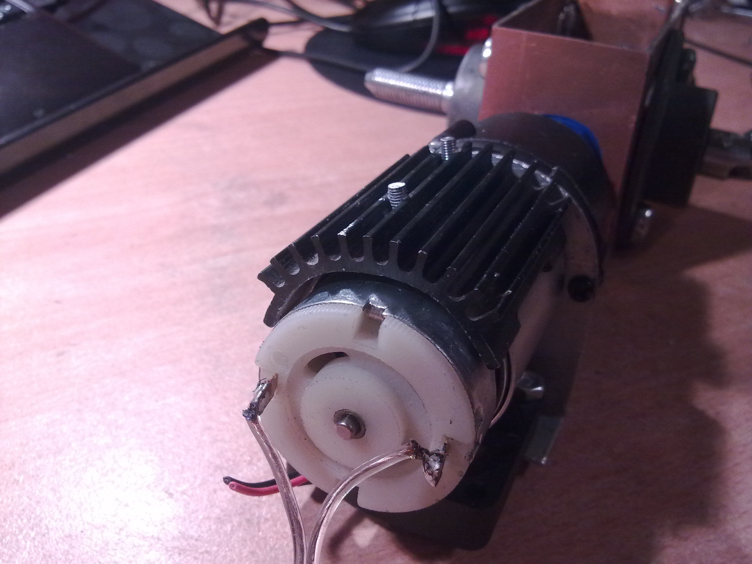 во время испытания двиг грелся немного, но все же(при напряжении 18в). Решил радиатор забабахать, получилось вроде красиво) радиатор из старехотного компа, с процессора. Гнется очень легко)
