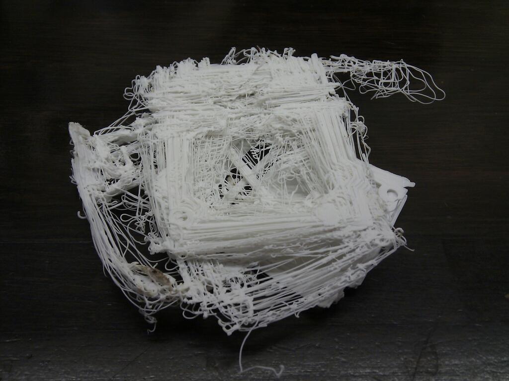 То наступает деламинация - когда принт начинает отслаиватся от стола и его начинает несчясно деформировать. Приходится дополнительно к модели пририсовывать площадки-подпорки для лучшего сцепления со столом. итд.