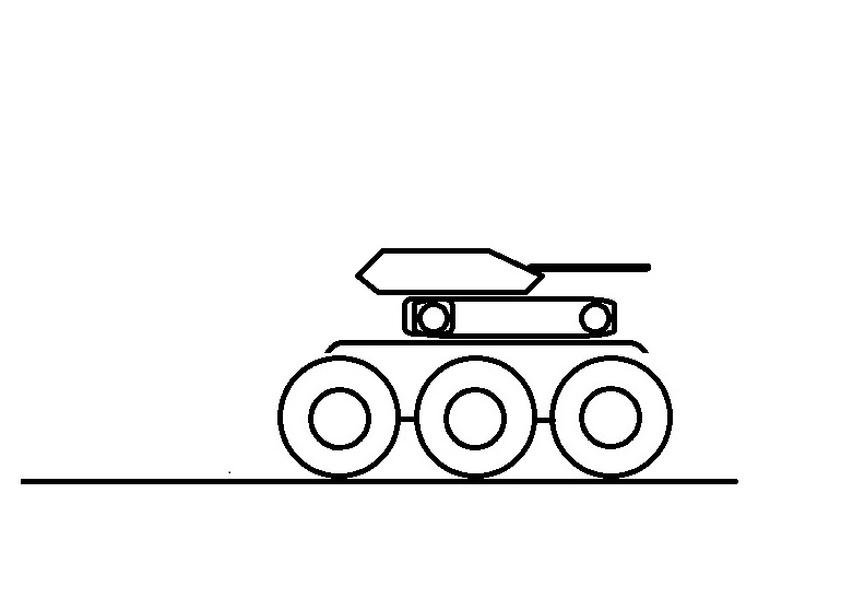 Шасси имеет 6 мотор колес с электродвигателями, передние пары колес на маятниковом балансире. Задняя пара на независимой подвеске. Балансиры имеют привод от 2х электродвигателей, что позволяет перешагивать через ступени равные по высоте половине длины шасси. Продолжает движение в болотистой местности, зыбучих грунтах и на воде.