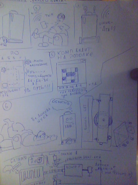 Вес робота в пределах 8 кг. Два привода (не знаю какие лучше?), ориентацию робота предполагаю организовать с веб камеры по маякам на потолке. в качестве мозга дешевый планшет c Android или же поставлю (на планшет "опыт есть положительный") Ubuntu, на него.