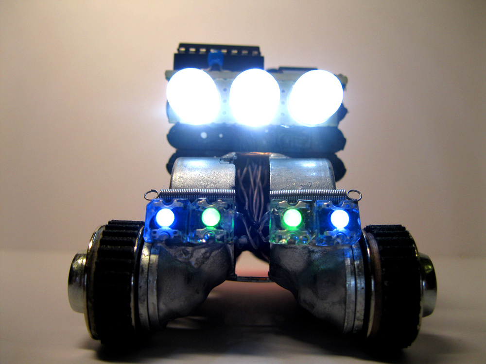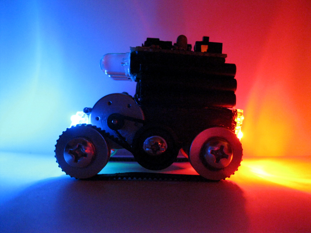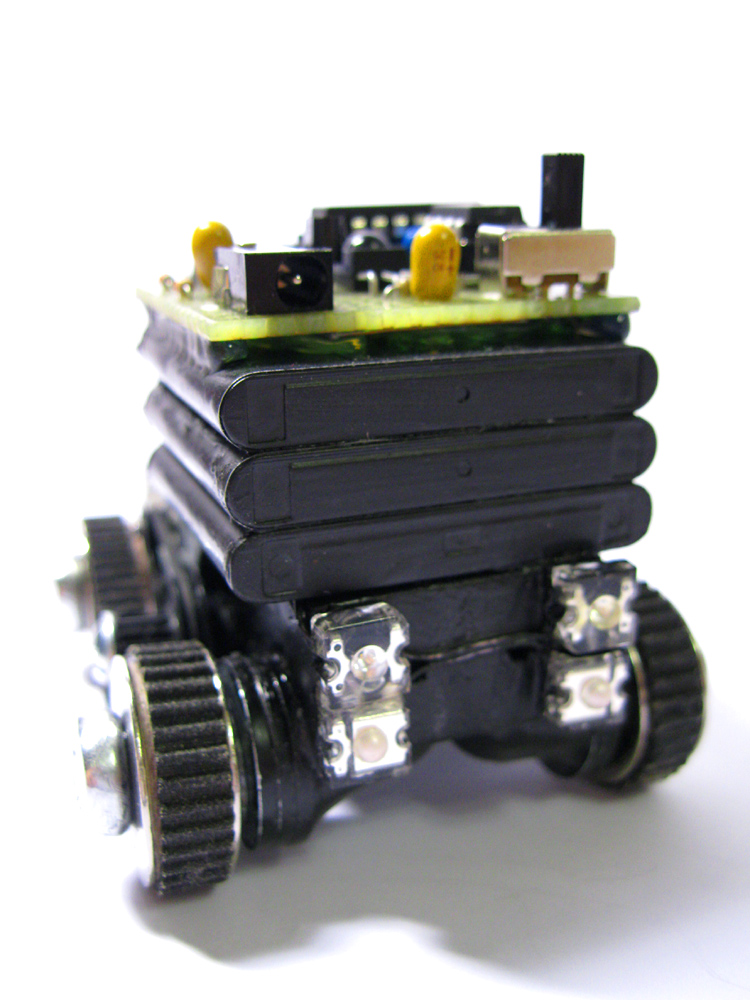 насчет акума, то сначала планировался один, моторы с приводами крутились на холостом, после добавлений гусениц моторы еле-еле справлялись поэтому добавлен второй аккум.... драйвер L293D украл еще 1,5 вольта поэтому Луноходик еле шевелился, поэтому, для уверенности, пришлось добавить третий аккум...