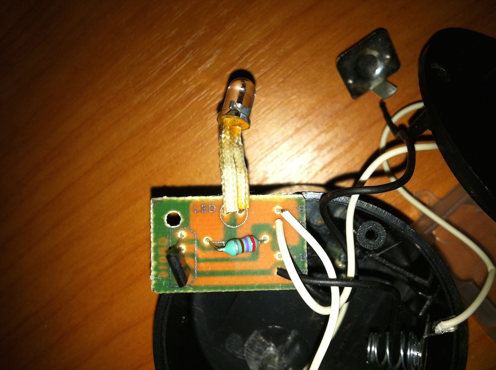 Если стоит задача просто добить старые батарейки, мигающего светодиода хватит за глаза, без всяких фотокомпонентов. Если хочется легкого решения, то тут правильно советуют садовые фонари. Дешево и сердито. Вам надо будет только убрать массивный корпус и сделать крепеж для строп.