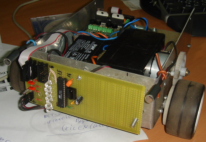 Ходовка получилась неплохой, моемент на колесах отличный, легко взбиратеся на 45-ти градусный подъем и эт с общим весом около 1,2 кг.