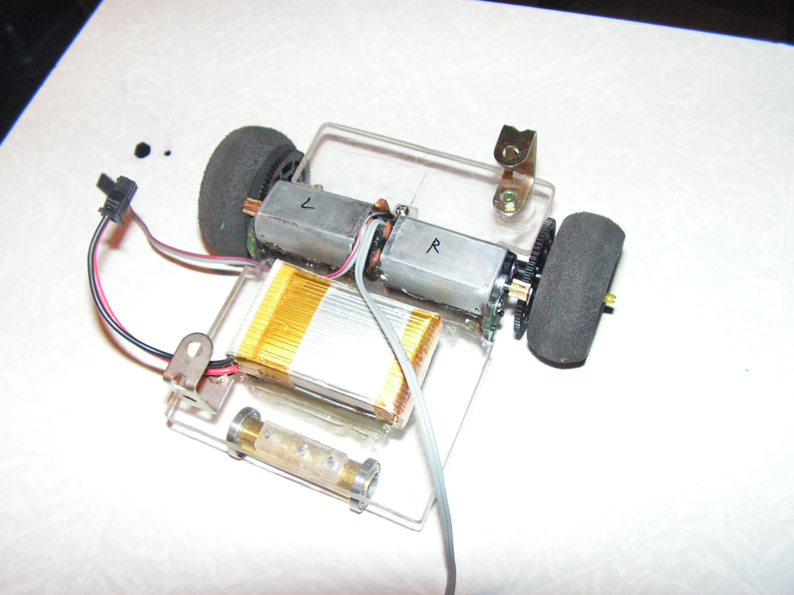 закрепил акб (тоже от вертолета, 7,2В 600мАч, 2е банки Li-Po, со встроенным контроллером зарядки)