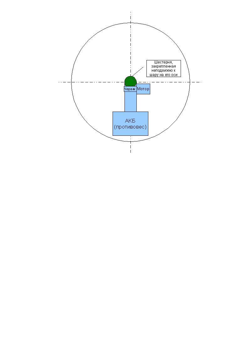 Внутри шара механизм, смещающий груз (аккумуляторы) отностительно оси шара вперед (для движения вперед), назад и вправо-влево для поворотов.