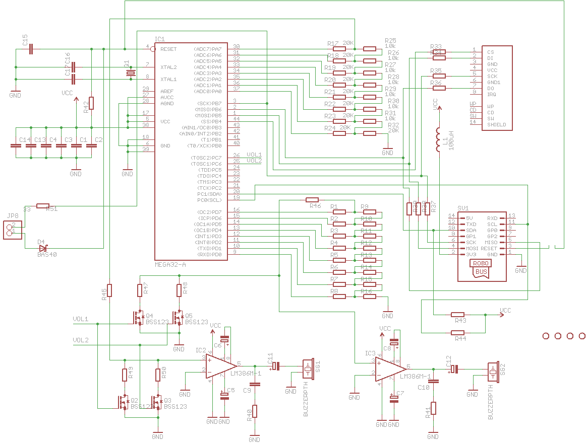 Базовая тема данного обсуждения - Звуковая карта для МиниБота и МиниБота-ПРО. В ней обсуждается теория, особенности работы с SD-CARD, fat16 и т.п. Полученные результаты отражены в приведенной схеме.