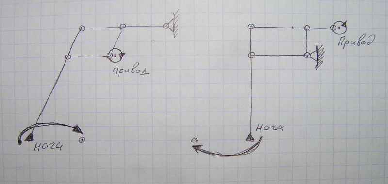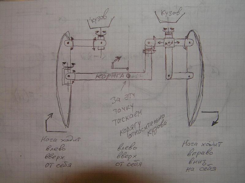 (как кривошип на рисунке) и приводит одновременно все ноги.