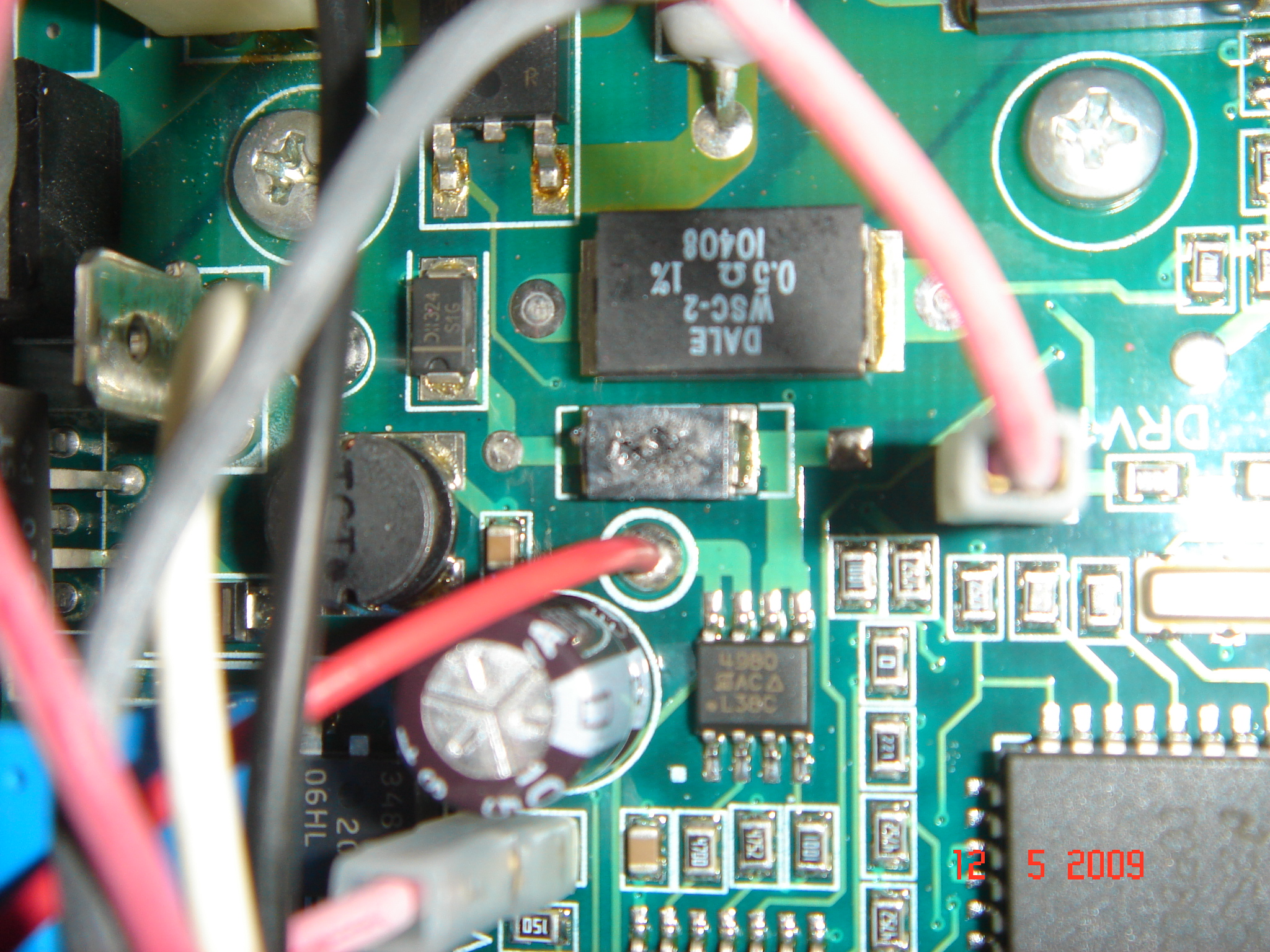 При это не срабатывает никакая защита. Как будто он просто программно останавливается, но есть сгоревший SMD элемент, соединенный (пока вроде бы, т.е. не 100%) последовательно с диодом в цепях измерения падения напряжения на низкоомном резюке, для контроля тока мотора крыльчатки.