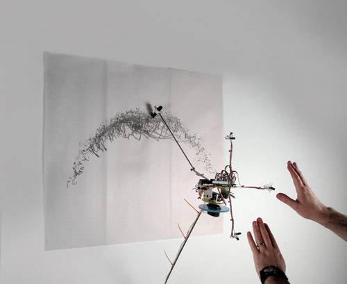 ..."Устройство использует четыре инфракрасных сенсора, чтобы отслеживать движения людей. Основываясь на показаниях датчиков, манипулятор с угольным карандашом выводит на бумаге рисунок. Каждый посетитель выставки может попытаться разобраться, как аппарат реагирует на его движения, и попробовать наладить с ним контакт." ЭТО стоит на какой-то выставке в Америке..Добавлено спустя 2 минуты 52 секунды: