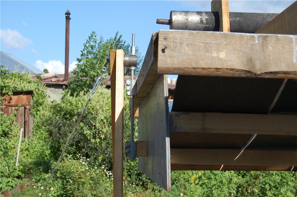 Мне кажется, для надежного вращения конструкции последняя ступень редуктора должна быть как-то с этой конструкцией интегрирована - или здоровая звездочка + цепь, или здоровая шестеренка, а к ней мотор-редуктор (от отвертки, стеклоподъемника или еще какой небольшой) с червяком. Только не представляю где это взять готовое. А, еще вариант - большой шкив с тросом, примерно как в верньерном механизме старых радиоприемников, если кто видел.