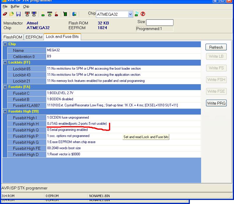 Программатор называется STK-200/STK-300. Фцсибиты находятся на диалоге программатора