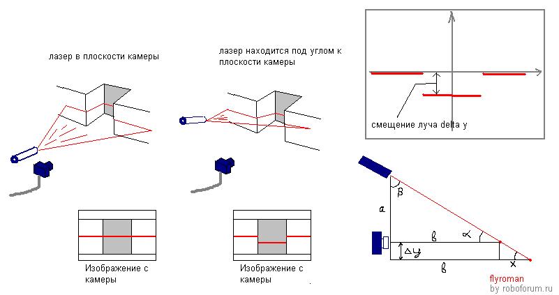 и еще.....если менять расстояние a - всмысле поднимать или опускать лазер...получаем полную картинку с расстояниями до всех объектов перед роботом...