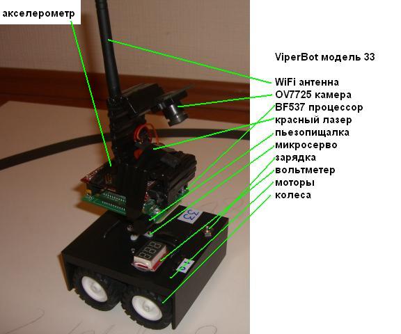 По поводу железа Surveyor отвечу вкратце: a) базовым комплектом надо считать SRV-1 Blackfin Camera + Combo Radio/Motor Board + WiFi ( ) $350. То что вы нашли, это в нагрузку еще корпус, моторы, колеса, акк, 2 лазера. Вот это и стоит $495, IMHO моторы слабоваты. В общем, шасси не стоит своих денег. В целях удешевления, можно выкинуть WiFi, плату регулятора 3.3в и драйвер моторов. Тогда вот это SRV-1 Blackfin Camera ( ) $195, придется ставить свой регулятор 3.3в, и прошивать через UART с ПК. б) по своей сути SRV-1 Blackfin Camera это два модуля, собственно камера (отсоединяемая, платка с 32 выводами) и процессорный модуль. По поводу камеры, лучше сразу брать OV7725 ( ), хотя держит до 640x480, зато изображение более светлое при меньшей освещенности. OV9975 мне не нравятся ( требуют больше света ). Процессорная плата это собственно процессор BF537, SDRAM 32М и ROM 4М (флеш). Программируется этот проц как микроконтроллер, компилируется прошивка на ПК, и прошивается в флеш. Потом перегружается и начинается работа с новой прошивкой. в) программа пишется на C, у нее есть доступ к 32М памяти, можно еще в флешку писать. Прошивка пишется в флеш прямо из программы. Процессорный модуль читает с камеры через DMA, есть UART0 (командный ввод, вывод результатов), UART1 (свободен). WiFi модуль (b/g), соединен с UART0. Все мои комплекты Blackfin имеют wifi, о чем нисколько не жалею. Экономия на WiFi для меня неуместна. г) вычислительных мощностей заявлено 1000MIPS для процессора BF537. Камера дает 7.5 fps для 640x480, 15 fps для 320x240, 60 fps для 160x120. 160x120 позволяет ездить по линии без проблем, более детально здесь я писал здесь ( viewtopic.php?p=121041&f=35#p121041 ), хотя все конечно зависит от алгоритма.