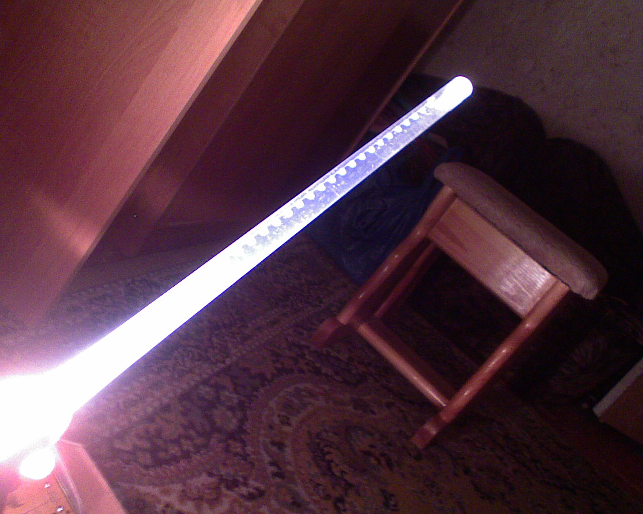 в принципе согласен, но по расчетам на шов нагрузки не будет вообще. Я сделаю маленькую ручку с кнопкой. Внутри аккумуляторы. Из ручки выходит закрепленный там же стержень, пока не знаю из чего. Наверно из толстой проволоки скручу. Зоадно получится спиральный зажим, там же диоды раскидаю. Плюсом будет стержень, минус - проволочки протяну. Испытанная конструкция))) И сверху ручки и стержня я просто "надену" палку. У ручки она будет закреплена. Наверху тоже к стержню прикреплю. Ток вот тока что подумал - при ударах же прочность понадобится((( кстати, а что если у мя есть две одинаковые трубки, которые я хочу спаять. Можно внутри пропустить аналогичную прозрачную трубочку, ток капельку поменьше диаметром, чтоб держалась там, а то если диаметра такого же туда затолкать, она просто порвет наружные трубки. Тем более на концах трубку легче всего порвать. Пропустить именно под швом. Тогда будет прозрачно + дополнительная прочность. Сами понимаете, что в делах со светом никакие швы и выступы не допускаются. При таком подсвечивании все сразу будет видно. А швы на лазерном мече - так некрасиво. Ща картину попробую закинуть с идеей.