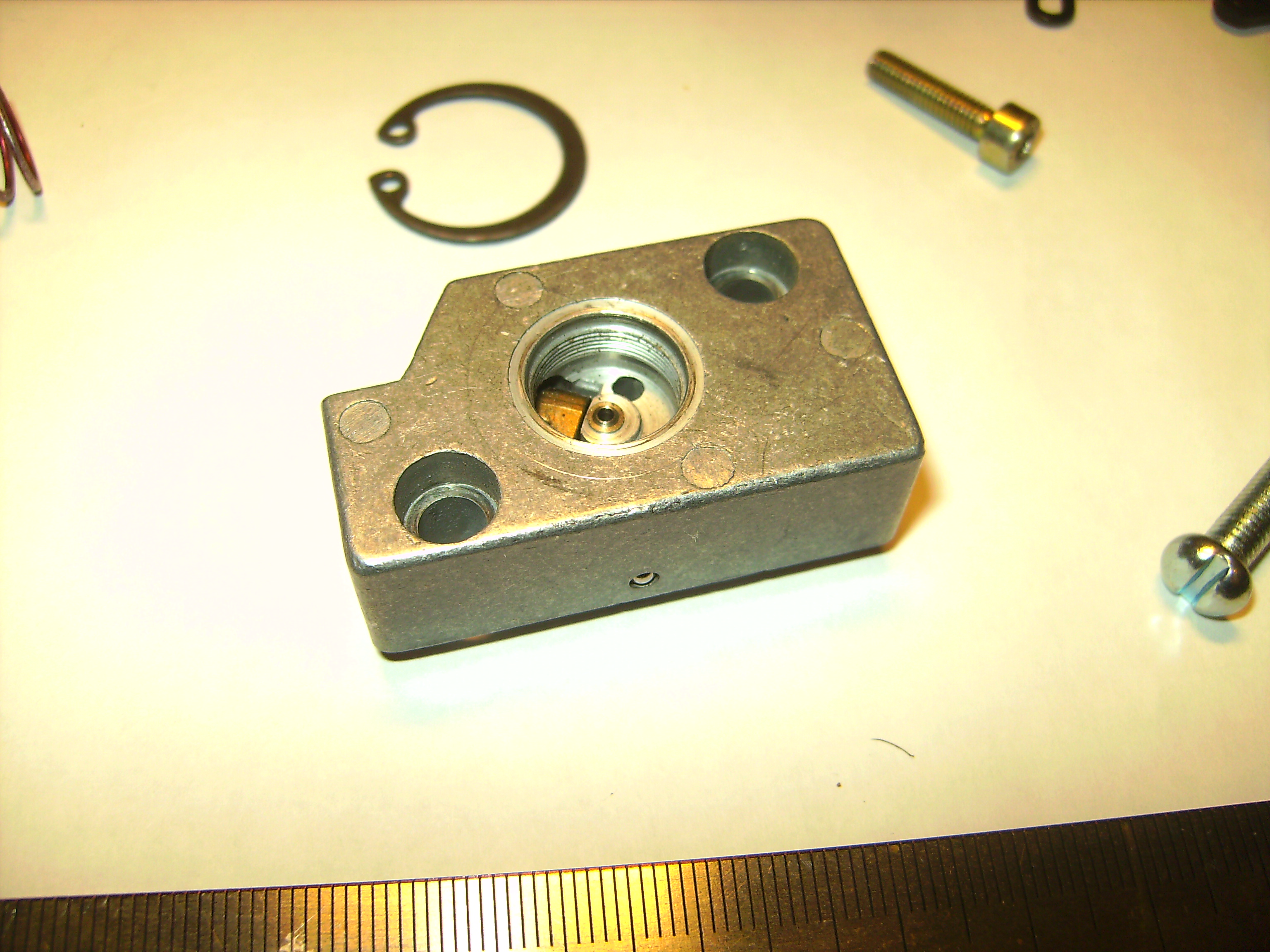 Все выглядит достаточно просто. В тракторах типа Т-16 Т-25.. и еще незнаю каких есть такая деталька которая называется "плунжерная пара" оно связанно с системой подачи топлива в цилиндры. и всегобы ничего еслиб не хитрая конструкция самого поршенька в нем с торца эсть отверствие и сквозное (смотрите 3д модель). вся работа по созданию из него пневмо клапана сводится к припаиванию 2 трубок и вращению поршня в приеделах гдето 90 радусов. Посути дела это тотже шаровый кран с единственной разницей усилия вращения - тут усилий почти нету.