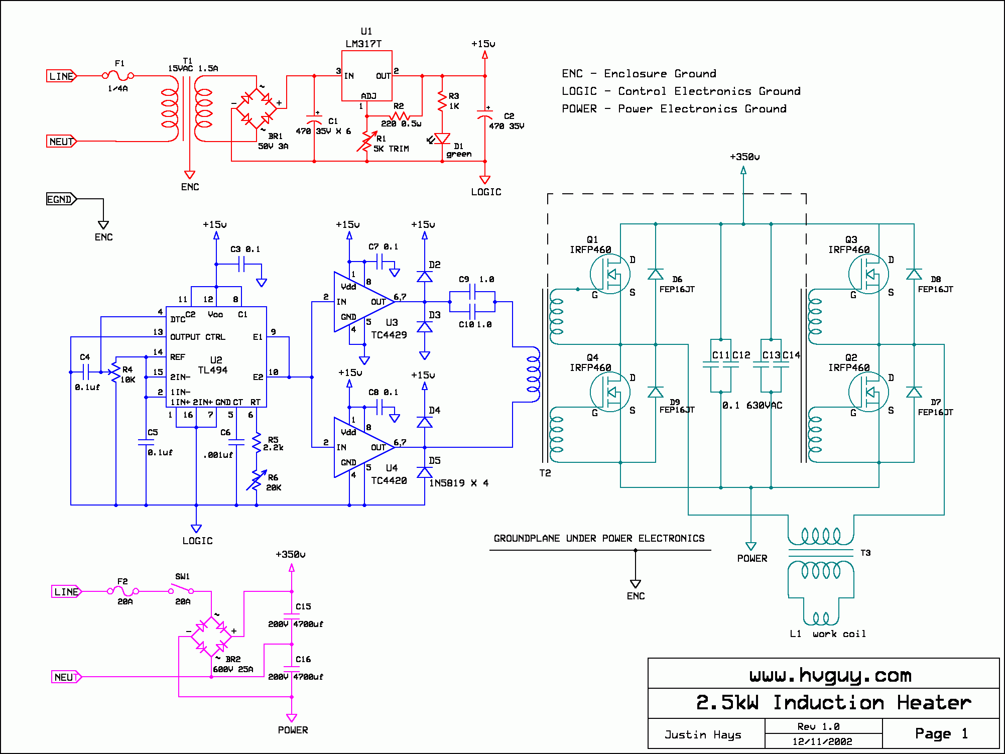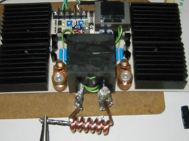 Есть у меня схема, довольно не сложная (забыл что на работе у меня ее нет, приду домой выложу ). ШИМ микросхема, по типу TL494, раскачивает 2 ключа, потом ВЧ транс, к которому подключены затворы 4-х полевиков (Н-мост) и все это дело идет через развязывающий транс на индуктор.