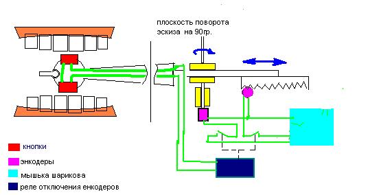 пробую сделать прототип., но заменив в шариковой мышки шарик- парой моторов по осям и переключателями на них по типу Н-моста, через пасик от сидюковых движков, питание на них не определился по какой схеме удобнее подавать..